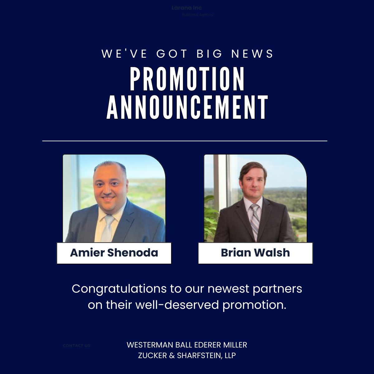 Westerman Ball Ederer Miller Zucker & Sharfstein, LLP is a full service commercial law firm with offices headquartered in Nassau County. We offer a wide range of legal services in the areas of Bankruptcy, Debtors’ and Creditors’ Rights, Commercial Litigation, Construction Law, Corporate & Securities Law, Labor & Employment Law, Real Estate Leasing, Acquisitions, Sales, Financing & Development, and Trusts, Estates & Fiduciary Litigation.
